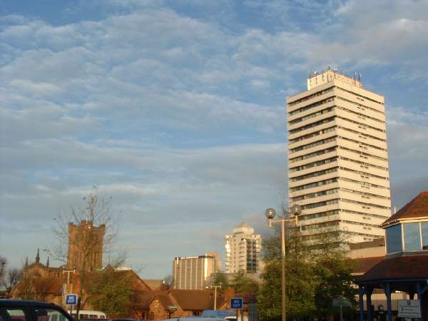 | Mercia house and the precinct, Coventrys tallest modern block at 225 ft | ||