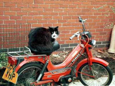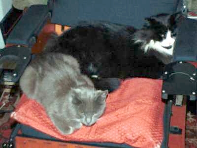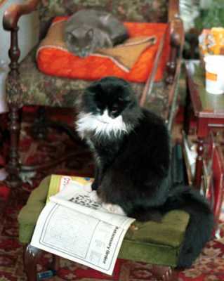 Pluto keeping this dog at bay, with a hiss or a snarl if