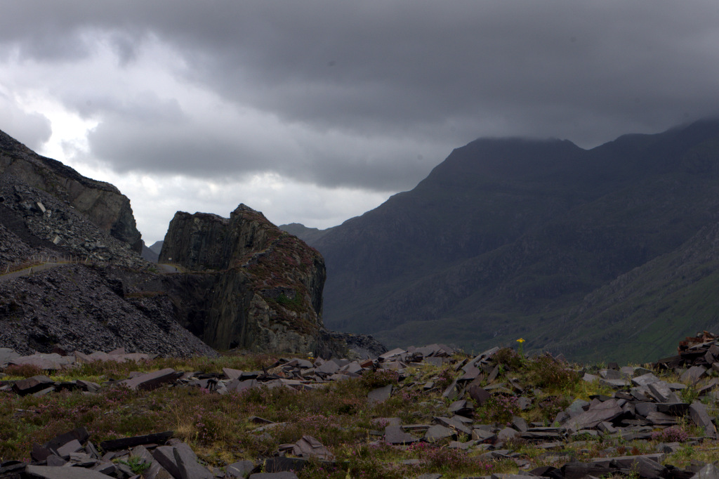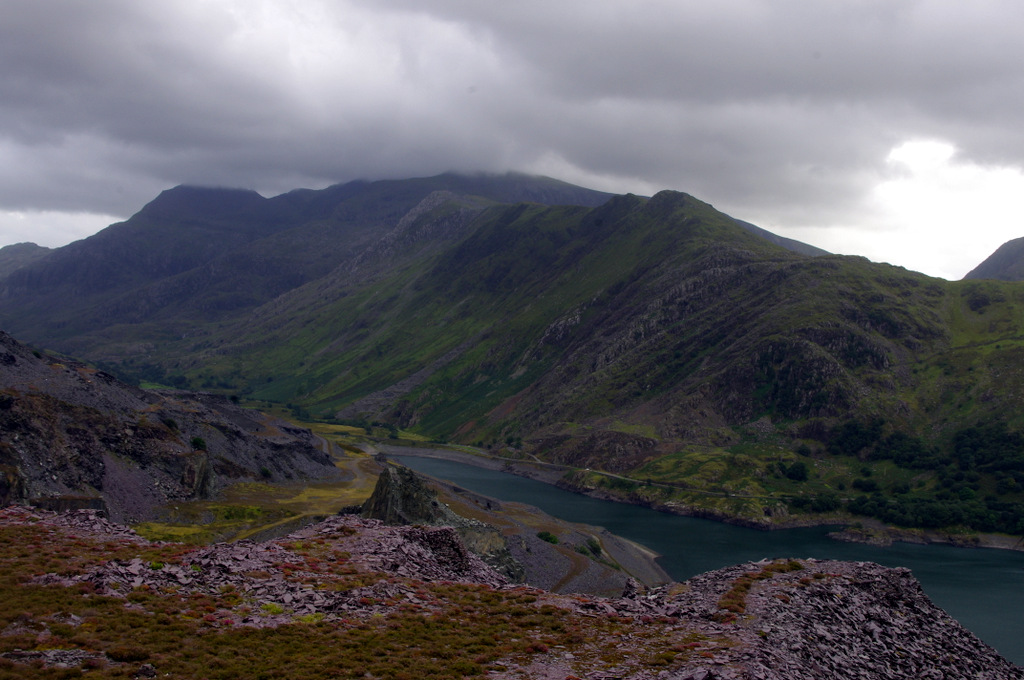 Llanberis pass from the Slate Quarry, the rocky outcrop reminds me of Minas Tirith! |