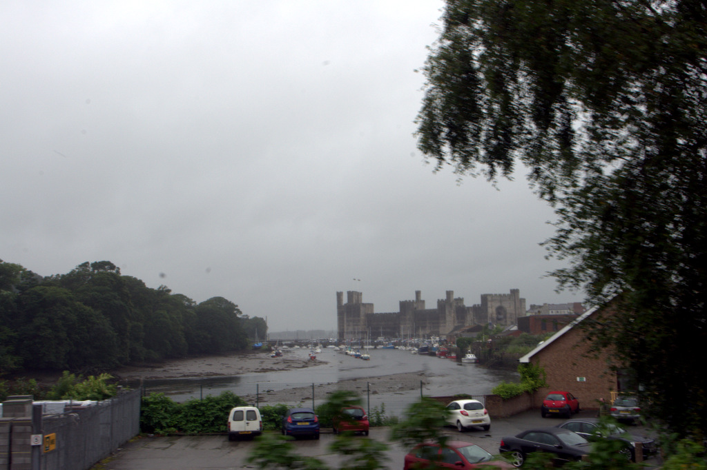 Caernavon Castle from the railway (dust on the film sensor, grrr!) |